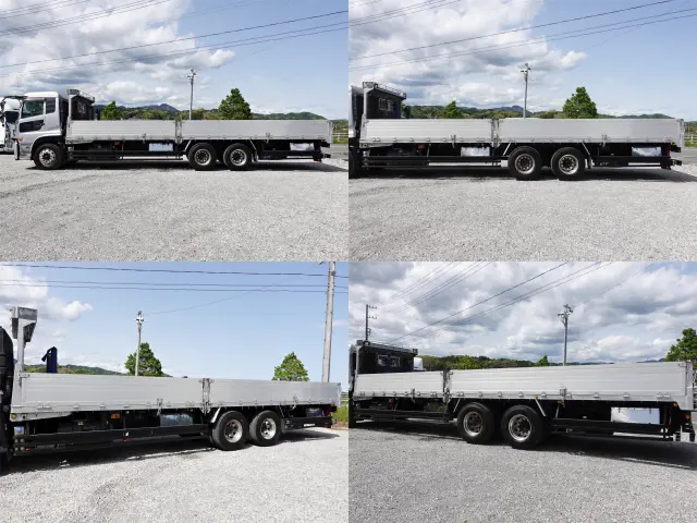 積載13.7t 大型 平ボディー 荷台床縞鉄板張り 左電動格納ミラー 左右電動角度調整ミラー バックカメラ 集中ドアロック有り ベット 車検証サイズ1197×249高301 荷台内寸約956×235